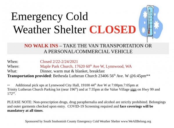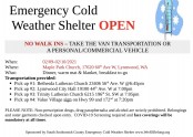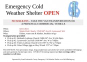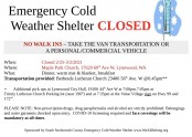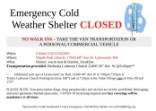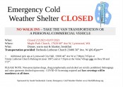 Emergency Cold Weather Shelter is Closed 페이지 정보 작성자nestm 댓글 0건 조회 6,509회 작성일 21-02-23 09:00 본문 Emergency Cold Weather Shelter is closed, 2/22/21-2/24/21 SNS 공유 목록 댓글목록 댓글목록 등록된 댓글이 없습니다.